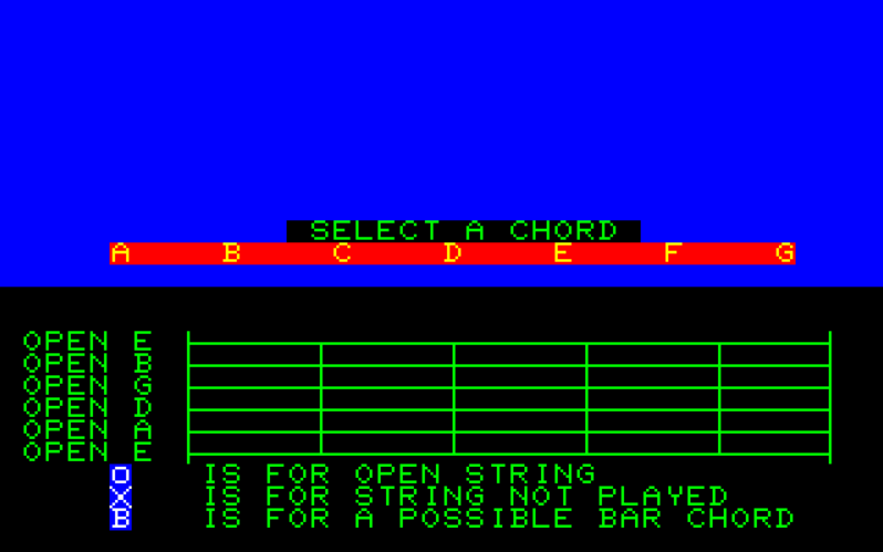 | "This is designed to find chords fast. There are extended notes to help in tuning your guitar. When the chords are displayed the notes sounded are the notes you should get if you hold the strings down as shown." | ||