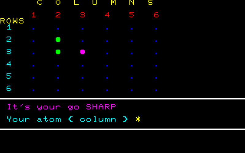 | "CHAIN REACTION is a game for two players, each take turns at placing volatile atoms of URAUNIUM 235 on the grid. Any atom that neighbours more than 3 other atoms becomes critical and sets off a chain reaction destroying itself and anything that connects with the chain. The winner will have destroyed his and the opponents' atoms but leaving 1 or more of his intact...." | ||