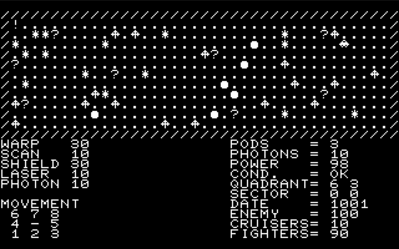 | This is a very large game with a lot of features so I'm surprised if this wasn't published officially somehow but I can't currently find any evidence that this happened so, for now, it's in the Homebrew section. The game is complex and seems reminiscent of the classic Star Trek games. | ||