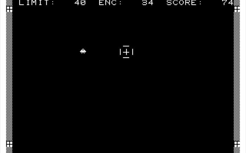| There aren't any instructions with this game. The movement keys are W, A, D, X and the fire key is the . key. I'm not aware of any other keys. It's a simple enough shoot-em-up presented in a first person / cockpit view but the only indication of that really is that the lasers you fire come from the four corners of the screen and directly move towards your cross-hair. I have included all three programs in a single WAV file for ease of use when loading. | ||